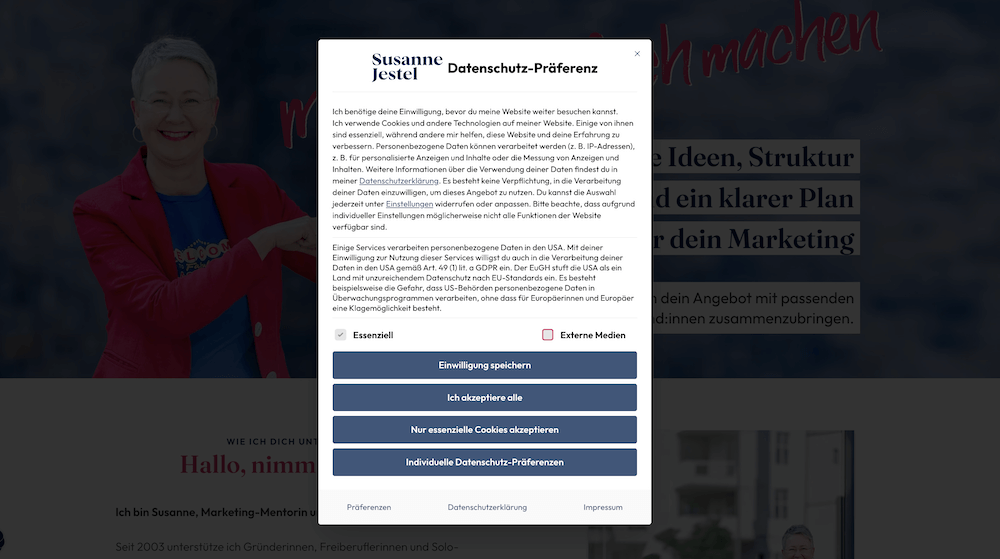 Ich wünsche mir mehr bewusste Cookie-Entscheidungen statt reflexhaftem „Alles ablehnen“. Gerade bei Websites von Selbstständigen können Statistik-Cookies helfen, Inhalte und Angebote zu verbessern – ohne dass daraus gleich Überwachung werden muss. Meine Regel: Ich stimme zu, wenn transparent erklärt wird, was passiert, und wenn ich Marketing/Tracking separat ablehnen kann.